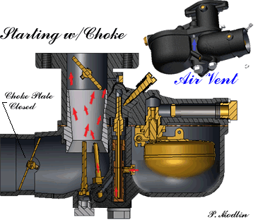 When the engine is started with the choke closed a greater vacuum is formed, pulling in a larger amount of fuel.
